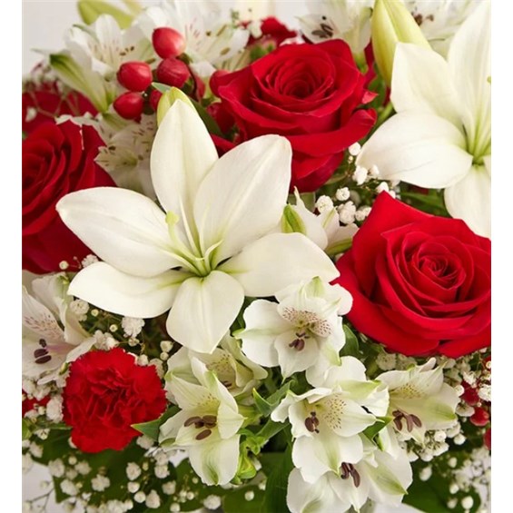 That feeling of bliss, captured in a bouquet. Inspired by the beauty of the European countryside, our best seller brings together radiant roses and lush lilies in a glass vase wrapped in red ribbon. Whatever your reason for reaching out, it’s a gift that delivers on delight