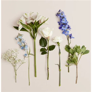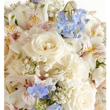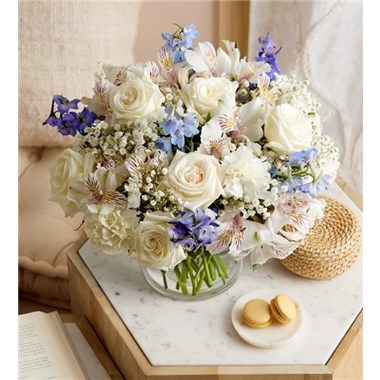 Our rustic, easy bouquet in shades of blue and white captures every wish you want to express to those who mean the most. Hand-designed inside a clear cylinder vase, it’s a gift that won’t leave them wondering how you much you care.